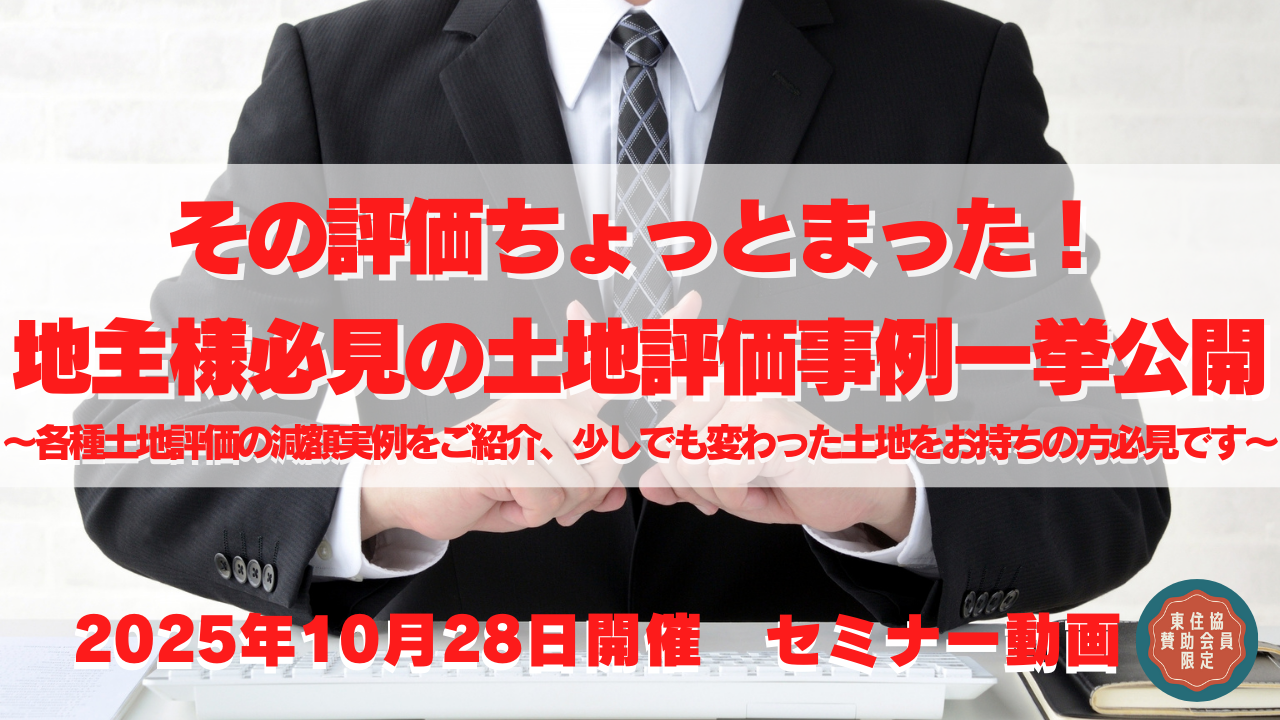 保護中: 【賛助会員様限定】2025年10月28日(火)開催『賢い賃貸経営と相続評価相談会』【第2部】『その評価ちょっとまった!地主様必見の土地評価事例一挙公開』